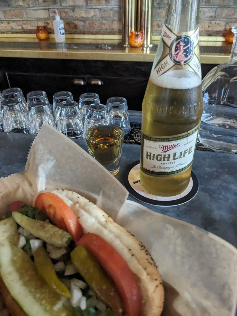 When I stepped out into the Wicker Park neighborhood for the first time in the Fall of 2023, I was on a mission. I wanted needed to find a Chicago dog. It’s tradition, if not a mandatory passage into the food mecca of the windy city. This past year I was able to make it to my first Cubs game where I guzzled down a tallboy of Budweiser, yelling “LFGGGGGGG,” and inhaling a hot dog wrapped in foil. A beautiful sight, really. This dog did have ketchup on it gulp but I swear I didn’t know the rules before. Hug me.
